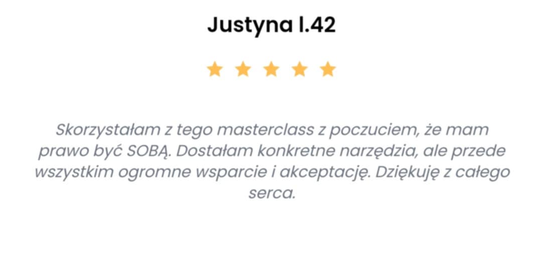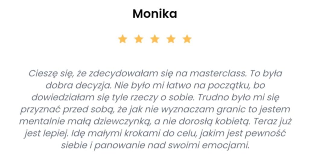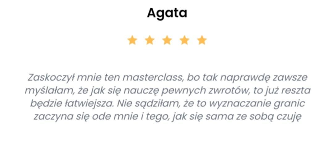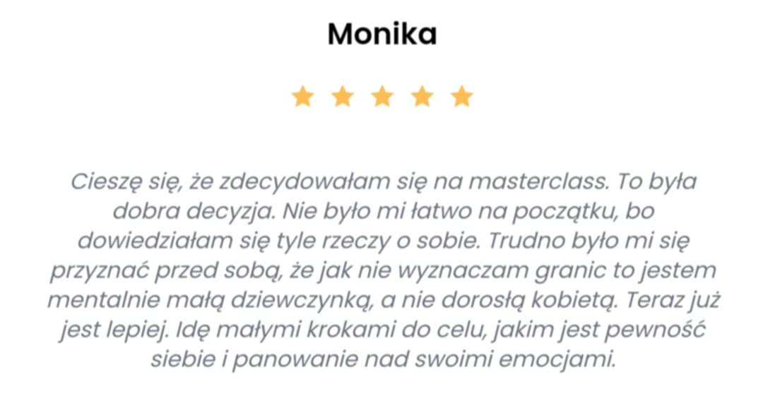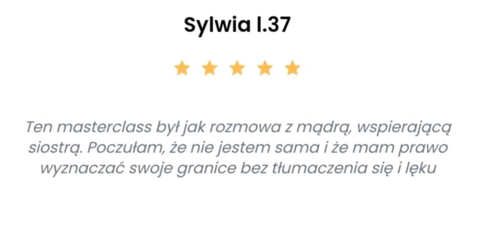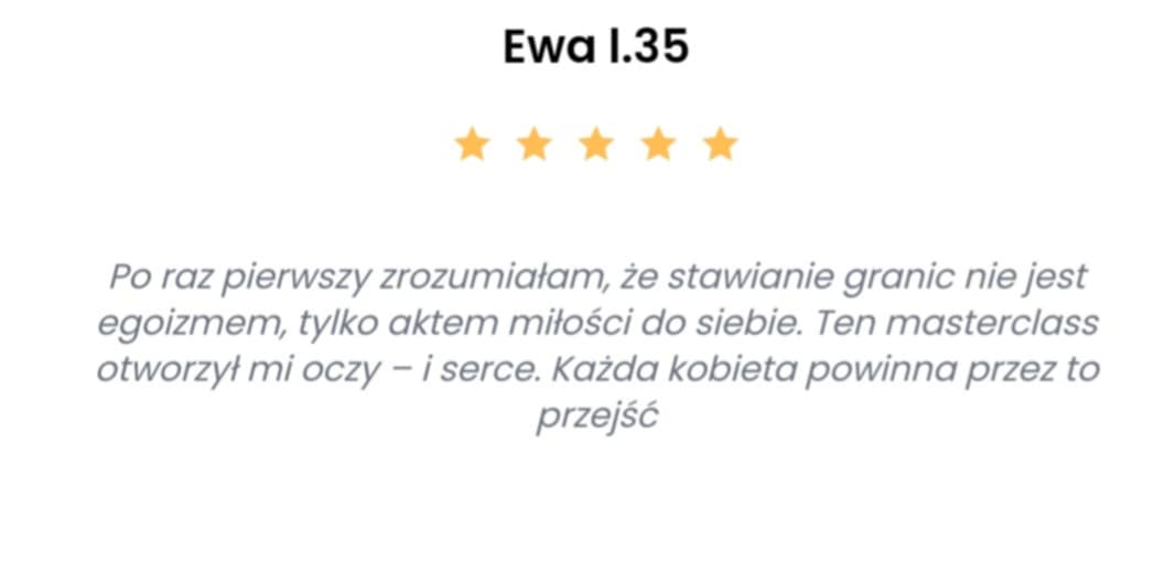Kupując masterclass Narodziny Granic nic nie tracisz! Jeśli po tym czasie nie będziesz wyznaczać granic i komunikować swoich potrzeb, zwrócę Ci pieniądze.